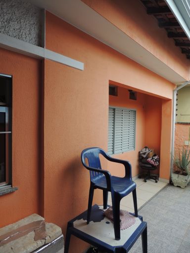 Casa térrea com três dormitórios com armários, banheiro social, sala ampla, cozinha com armários, garagem para dois carros (uma vaga coberta e outra descoberta). Edícula com sala, dormitório, banheiro e cozinha, lavanderia coberta e pequeno quintal.