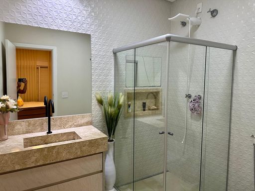 Sobrado no bairro Cidade Jardim em Campinas, com 208 m² de área construída, possui um amplo living para vários ambientes, lavabo, cozinha planejada, 3 quartos sendo todos suítes, climatizadas e com armários, lavanderia, espaço gourmet com churrasqueira, quintal, banheiro e área de serviço.